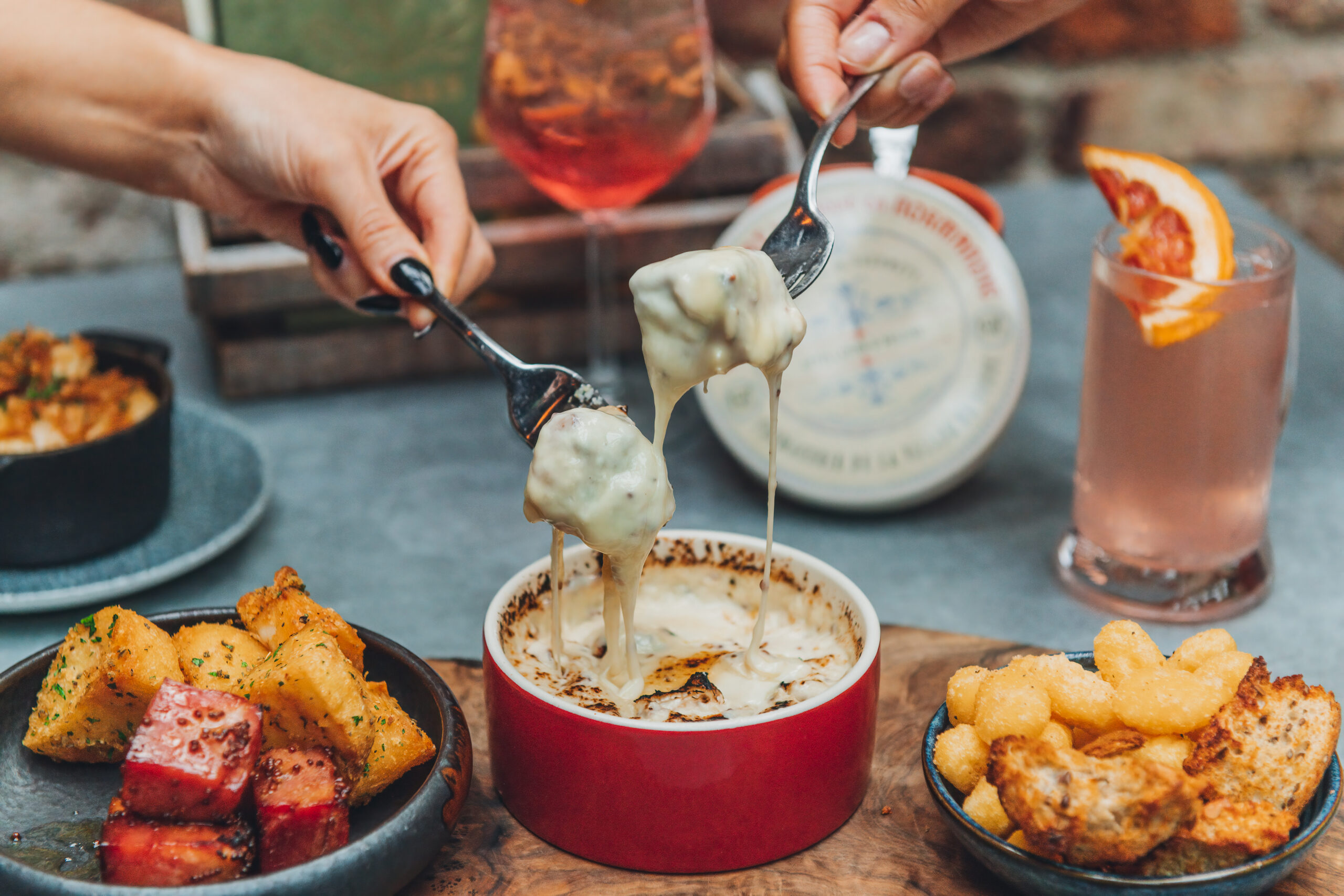The vegan option includes bang bang cauliflower, superfood salad, sweet potato houmous, crispy porcini gnocchi with truffle mustard mayo and roasted tomato soup. It’s the perfect food to nibble on whilst enjoying a few festive drinks between friends.