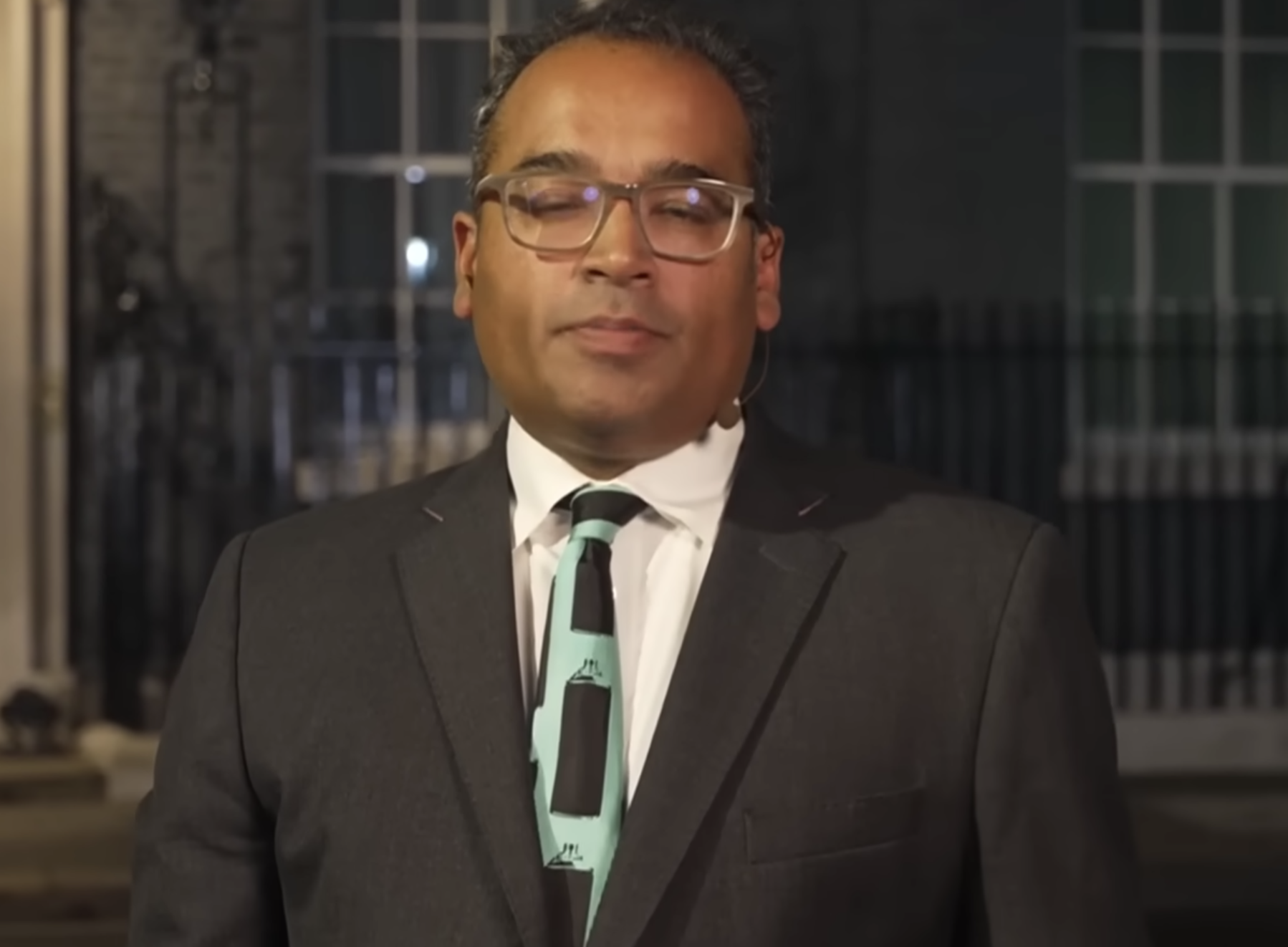 The Channel 4 presenter had been taking part in a ‘robust interview’ with Steve Baker, Northern Ireland minister, outside 10 Downing Street last night.